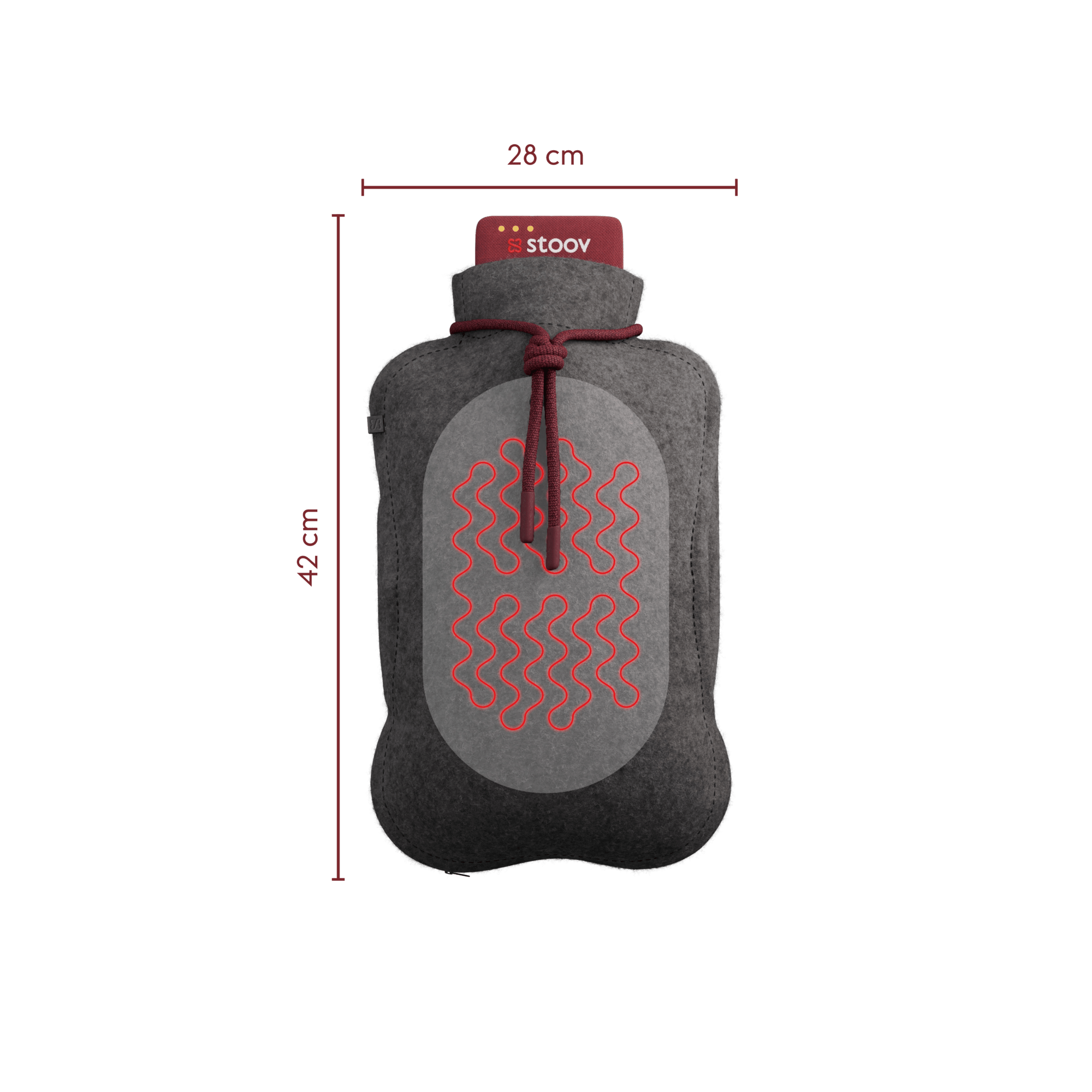 Cordless electric hot water bottle XL for cuddling. The infrared heating technology with three settings provides safe warmth up to 58 °C.