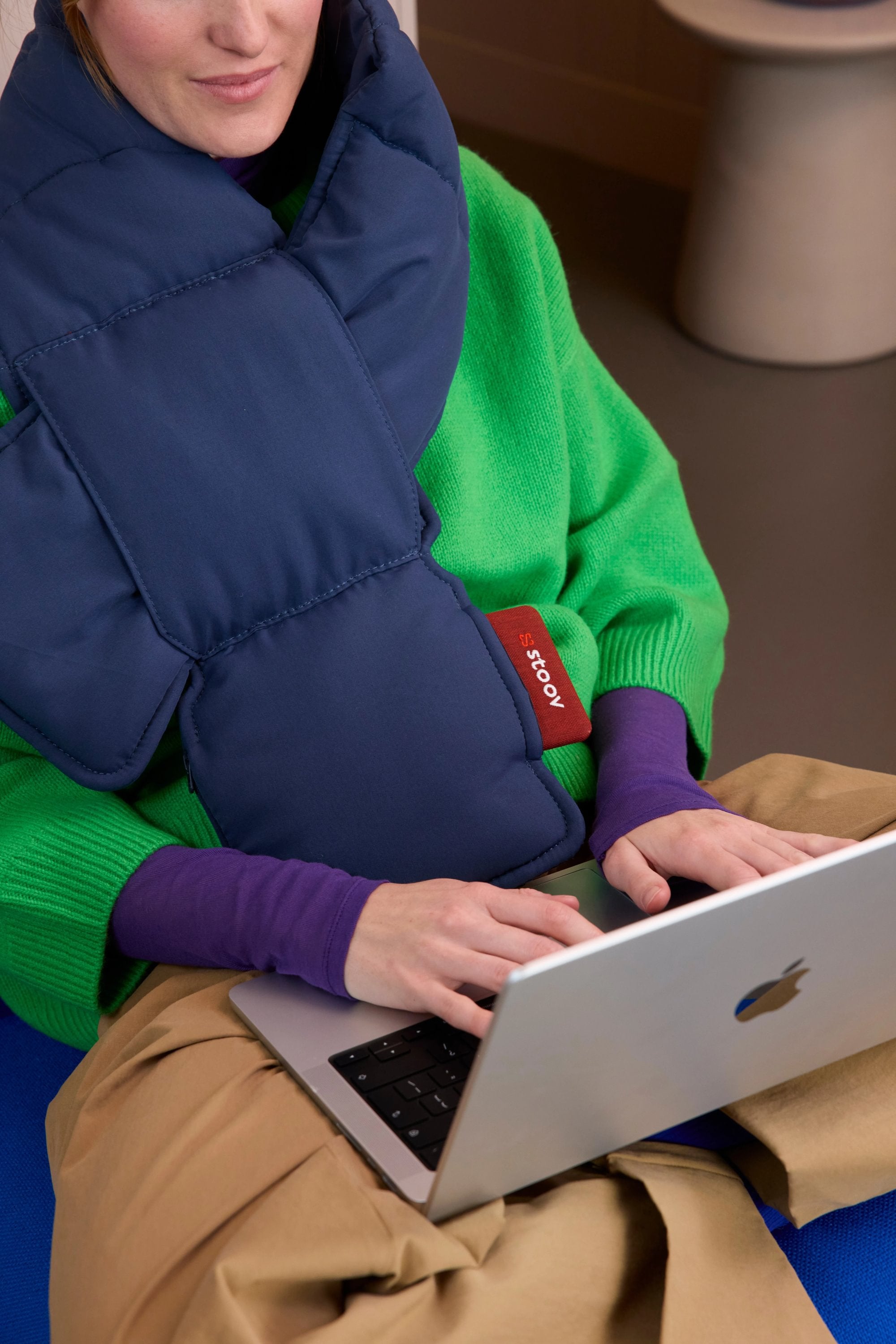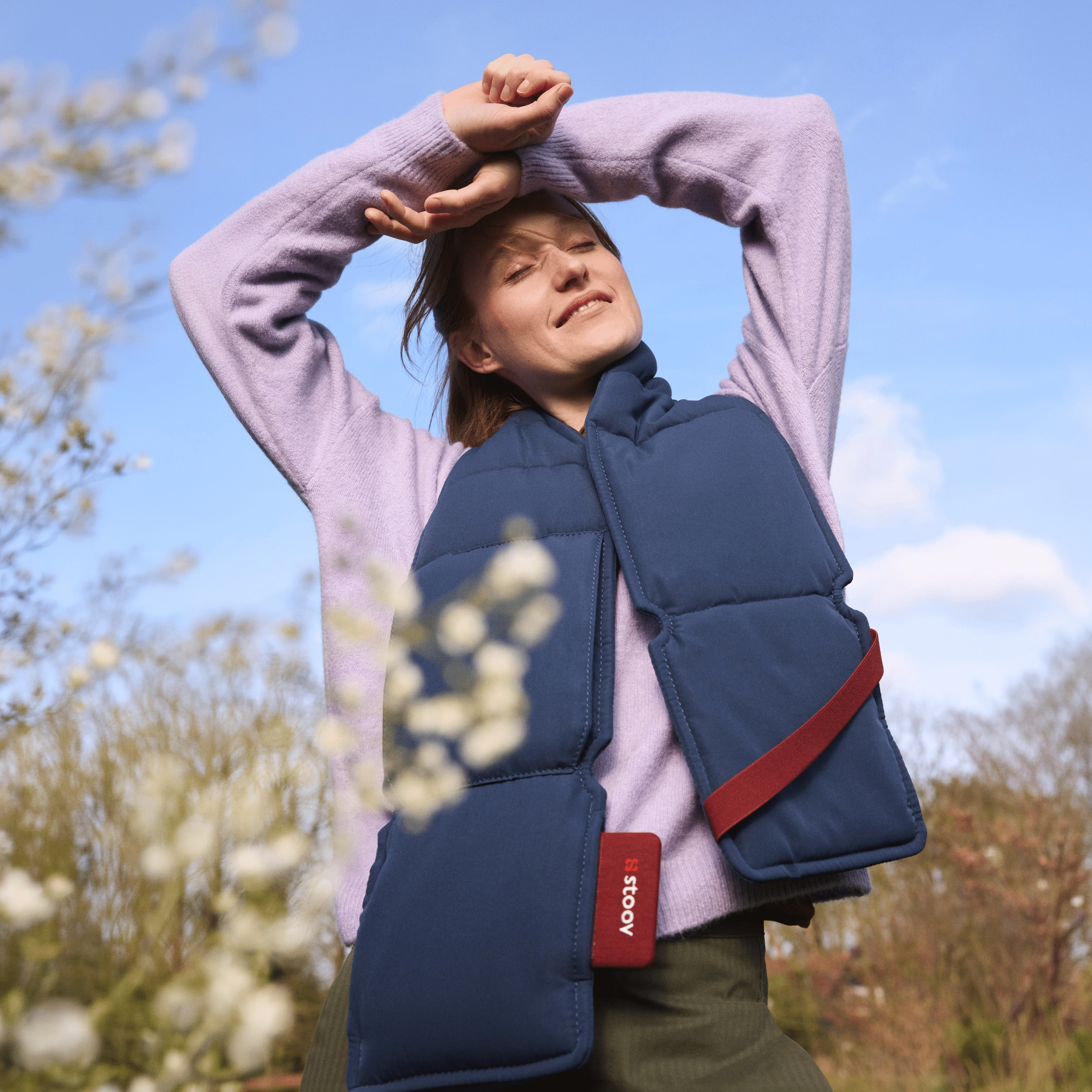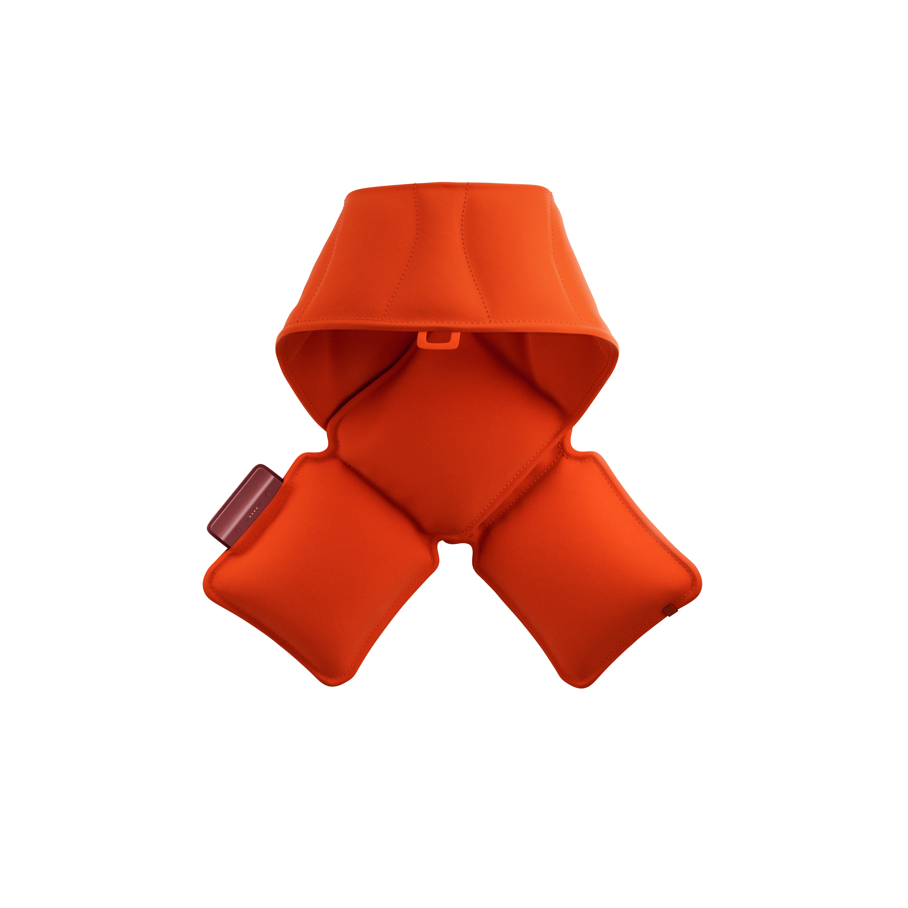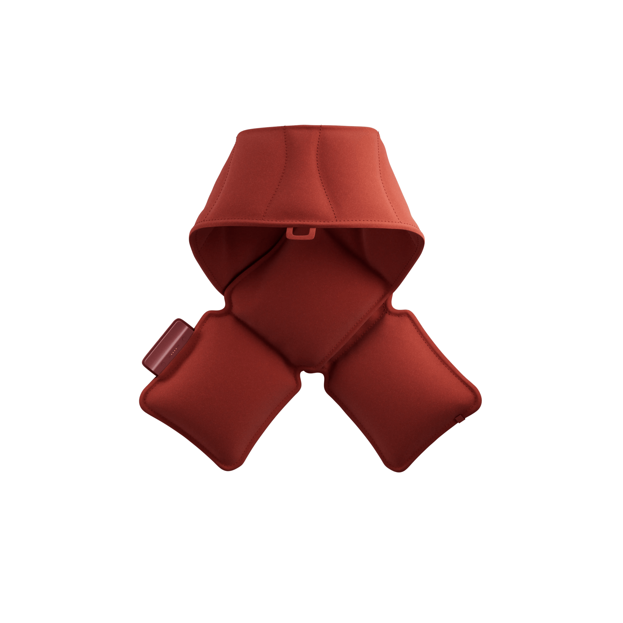 Cordless heated scarf for warmth on the go. Infrared technology with three levels reaching 58°C. Wherever you go.